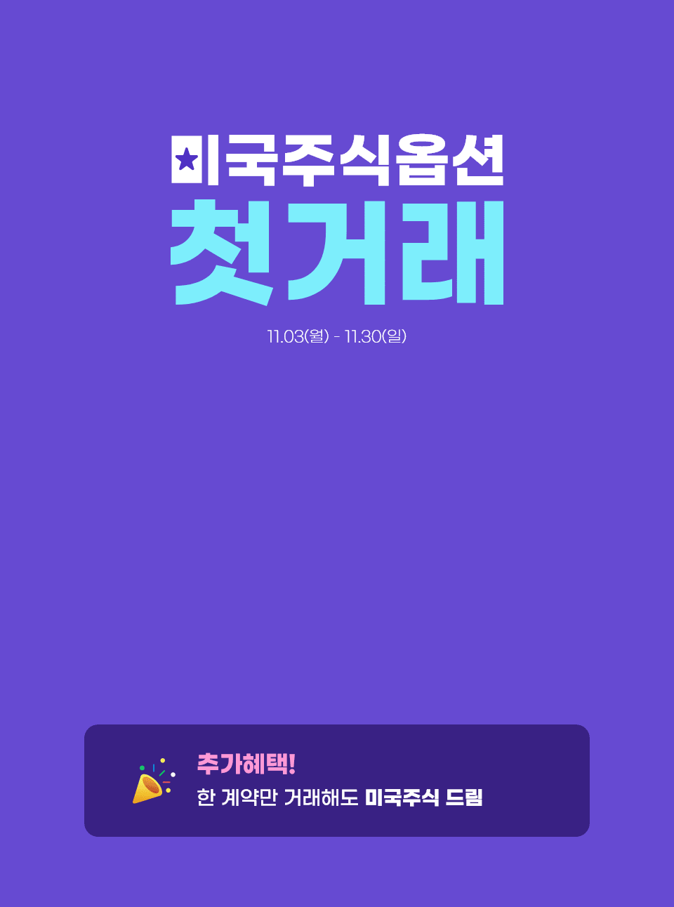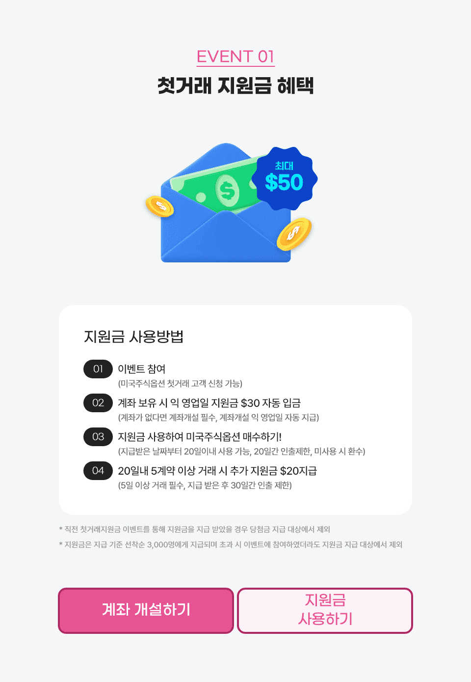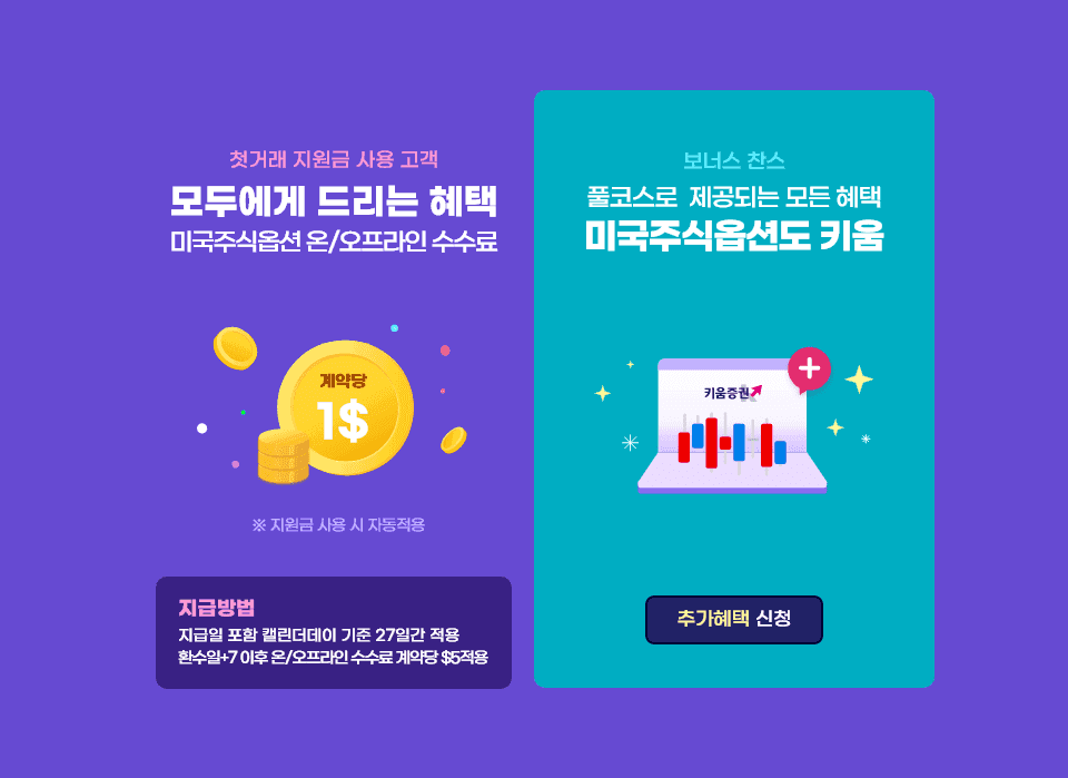 대상: 미국주식 옵션 첫거래 고객(첫거래 지원금 사용 및 이벤트 신청 필수)