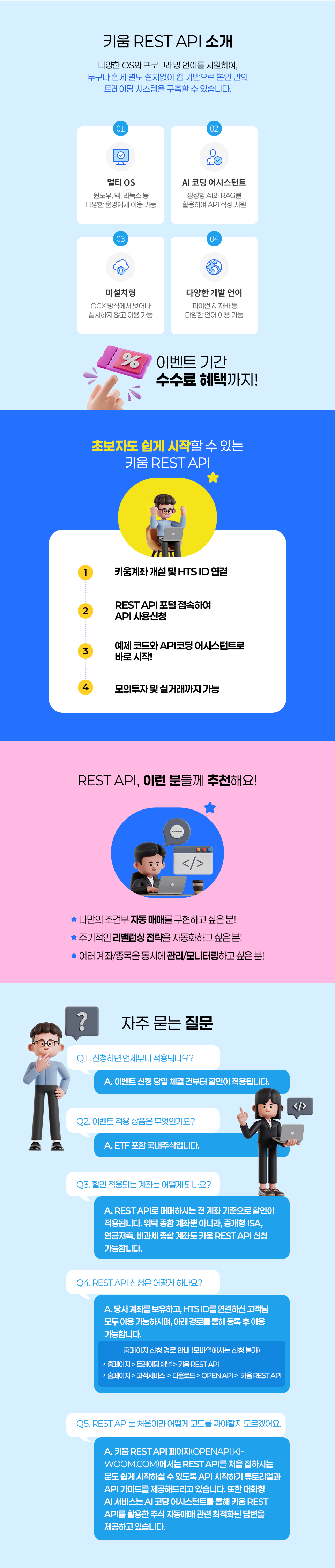 본 이벤트의 수수료 할인 혜택 적용 매체는 REST API 입니다. (단, 유관기관 수수료 및 제비용 제외)