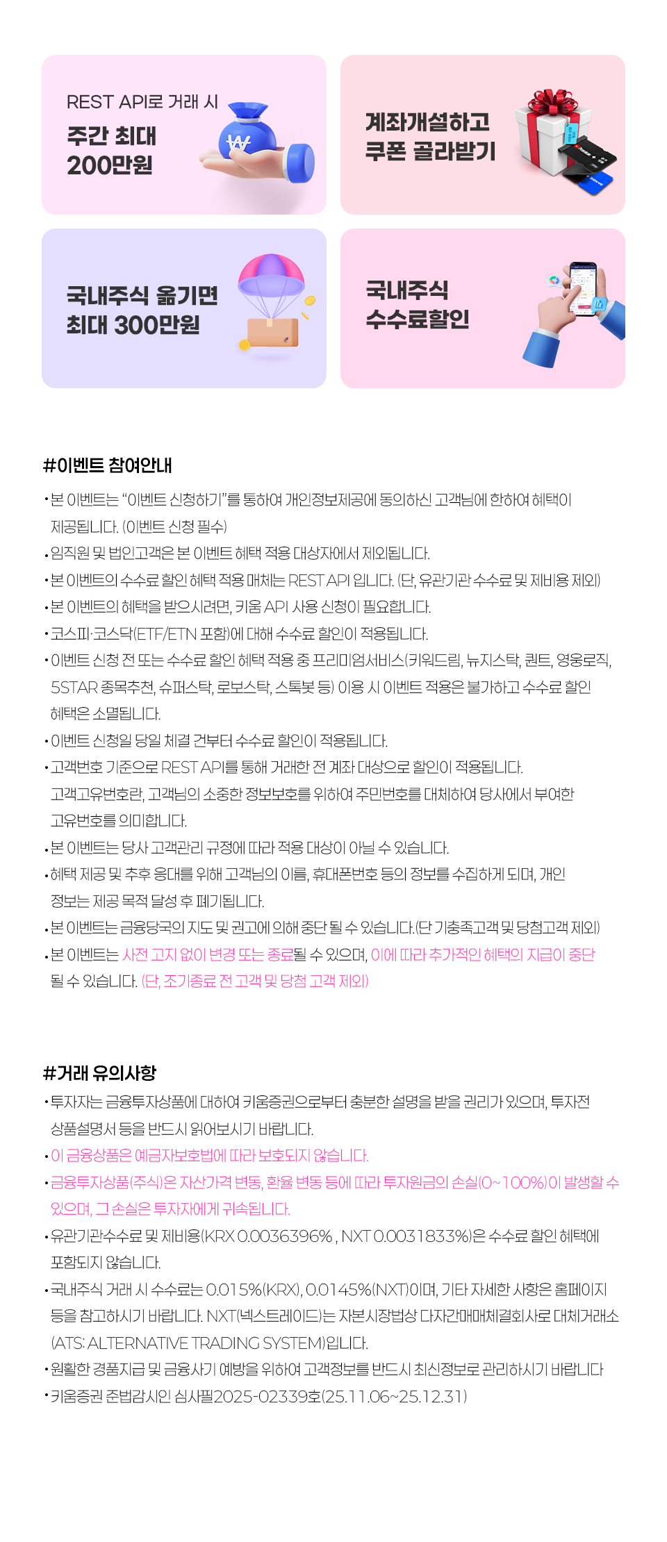 본 이벤트의 혜택을 받으시려면, 키움 API 사용 신청이 필요합니다.