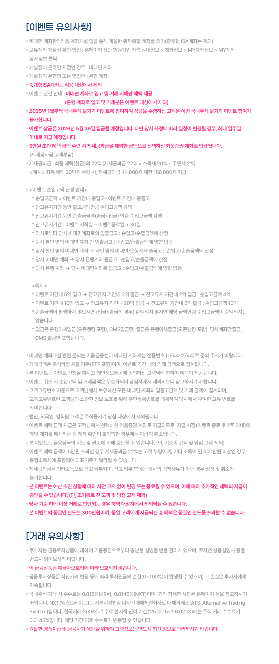 이벤트 관련 안내 : 비대면 계좌로 입고 및 거래 시에만 혜택 제공 (은행 계좌로 입고 및 거래분은 이벤트 대상에서 제외)