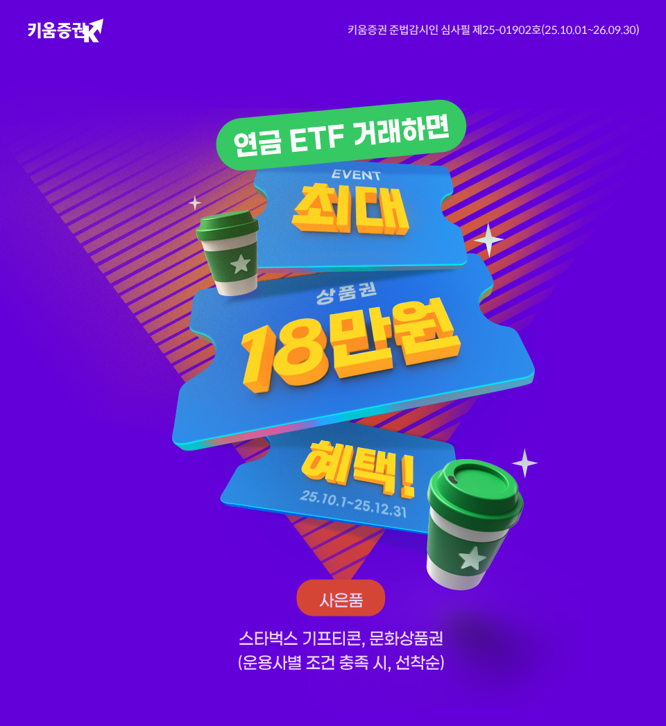 대상 : 이벤트 기간 내 연금계좌에서 대상 운용사 ETF 200만원 혹은 300만원 이상 매수 고객 누구나(운용사별 조건 상이)