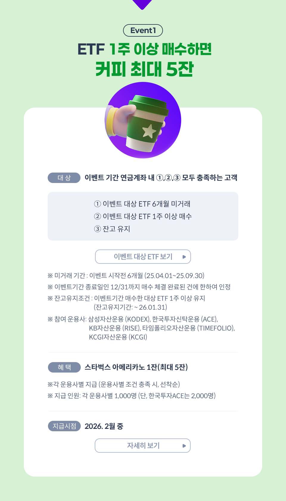 event1. ETF 1주 이상 매수하면 커피 최대 5잔