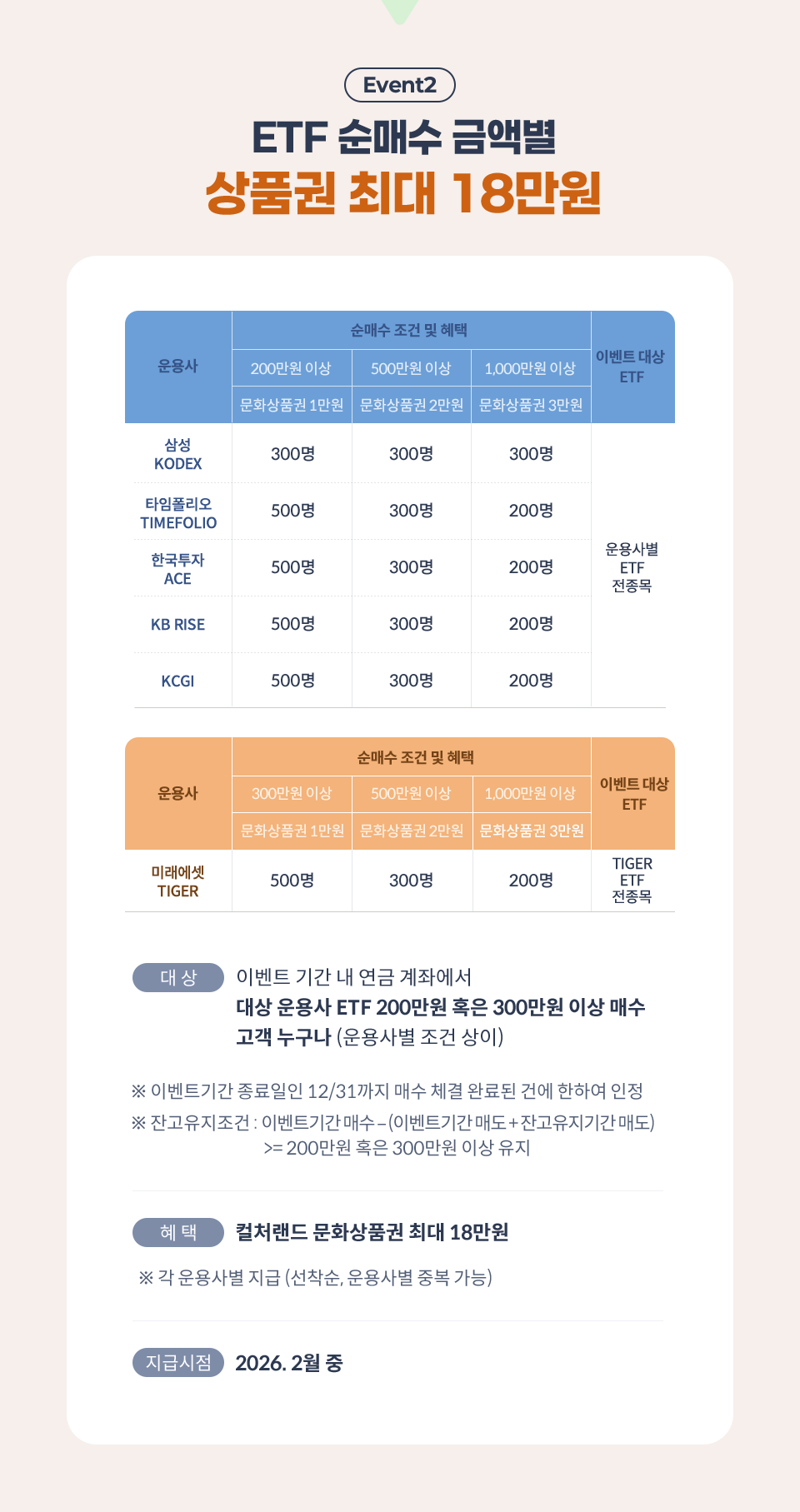 event2. ETF 순매수 금액별 문화상품권 받기(최대 18만원)