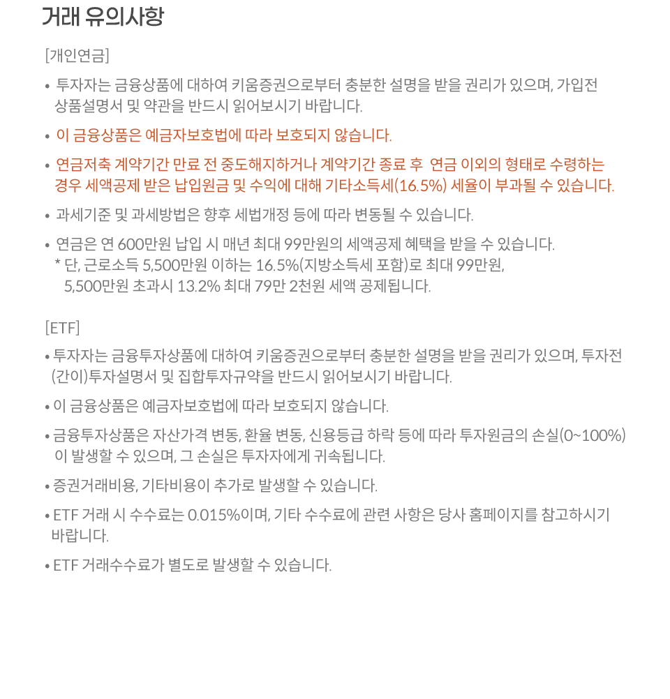 • ETF 거래 시 수수료는 0.015%이며, 기타 수수료에 관련 사항은
