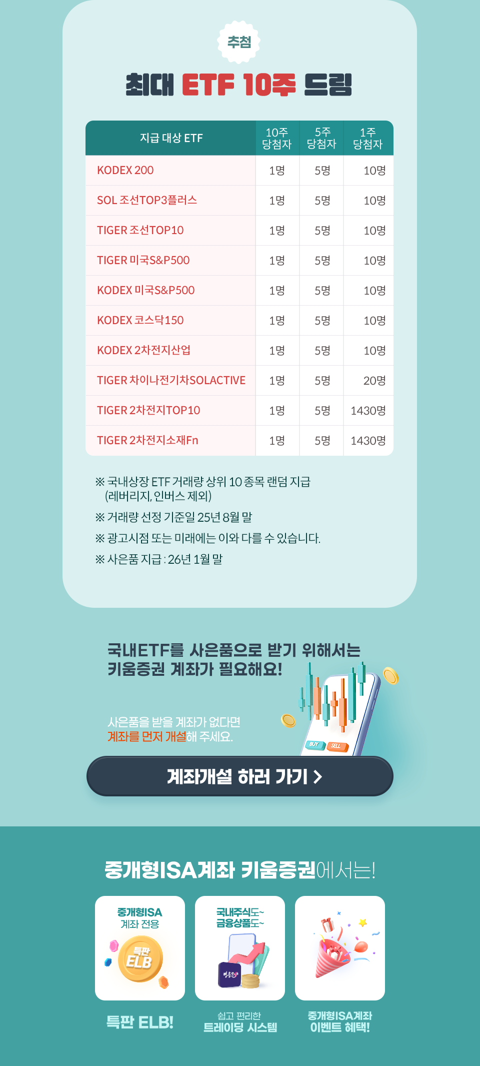 거래량 상위 ETF 최소 1주 ~ 최대 10주 추첨 지급(추첨 3,000명)