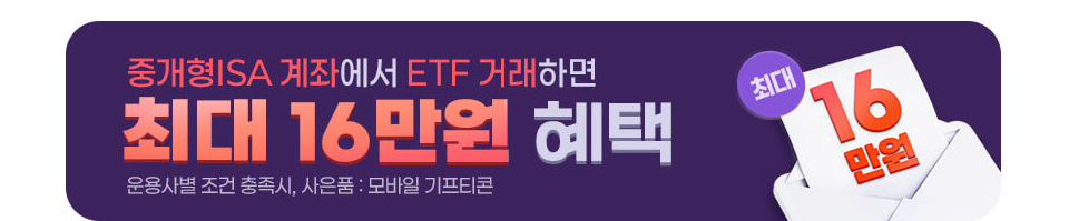 ※ ETF 거래 시 수수료는 0.015%이며, 기타 수수료에 관련 사항은 당사 홈페이지를 참고하시기 바랍니다.