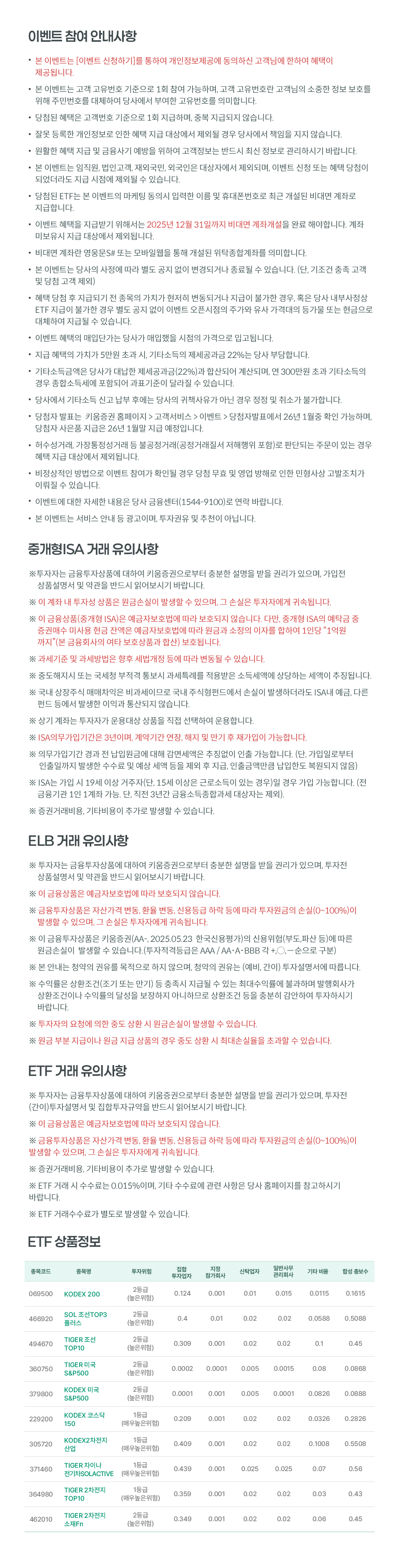 이벤트 혜택을 지급받기 위해서는 2025년 12월 31일까지 비대면 계좌개설을 완료 해야합니다. 계좌 미보유시 지급 대상에서 제외됩니다.